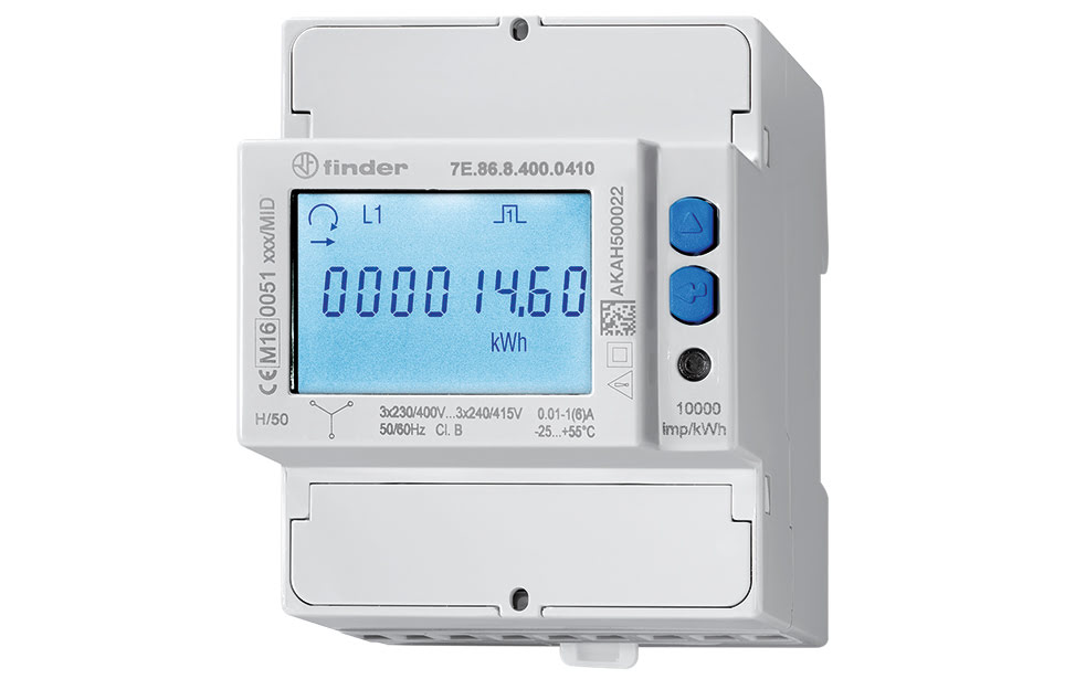 Finder KWH MTR 1X40A LCD MID SO - 7E. Wh meters, tijdschakelklokken en .